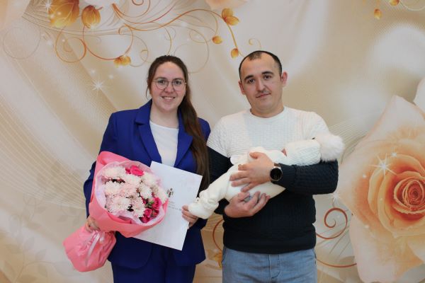 Специалист отдела поздравила родителей со значимым событием в их жизни, вручила первый правоустанавливающий документ — свидетельство о рождении дочери, и пожелала здоровья, счастья и благополучия.