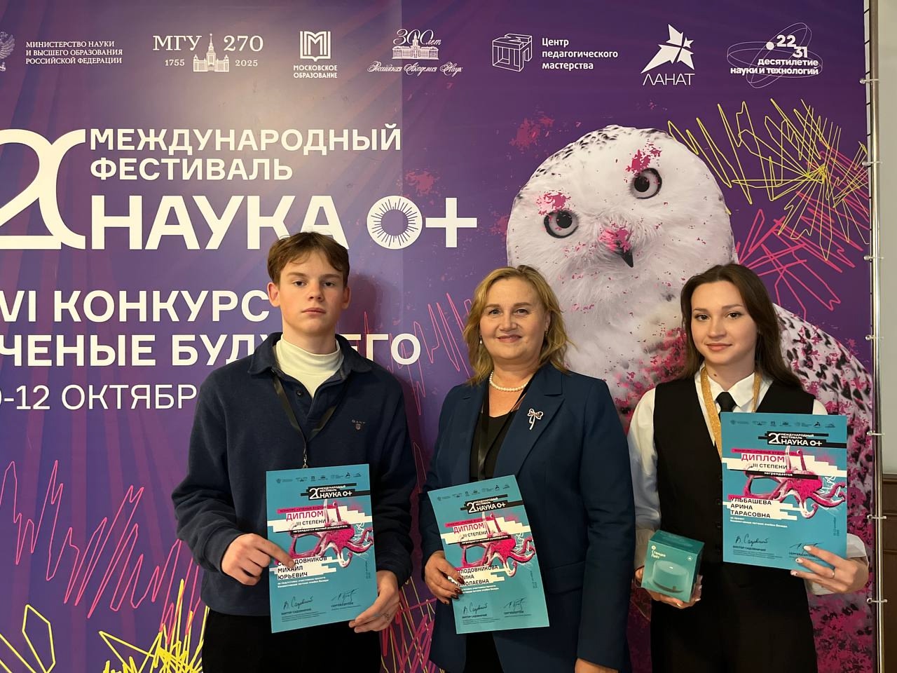 Ученики школы №93 стали финалистами очного этапа престижного международного конкурса «Ученые Будущего». Мероприятие прошло в Московском Государственном Университете имени М.В. Ломоносова в рамках всероссийского научного фестиваля «Наука 0+». Всего в финале участвовали 174 проекта по девяти направлениям. Из них 21 работа была представлена в секции «Физика и астрономия». В этой категории Арина Ульбашева и Егор Кицура продемонстрировали свои проекты научному и молодёжному жюри. Арина Ульбашева заняла третье место и вышла в суперфинал, который состоится 15 декабря 2025 года. Поздравляем ребят и их наставников с отличным результатом!